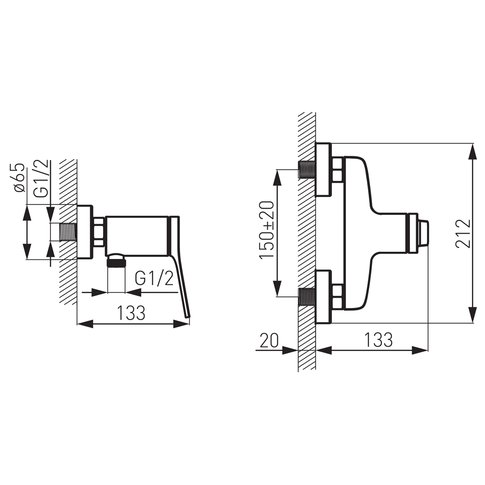 - G1/2 ekscentrični razmak priključka 150 ± 20 mm